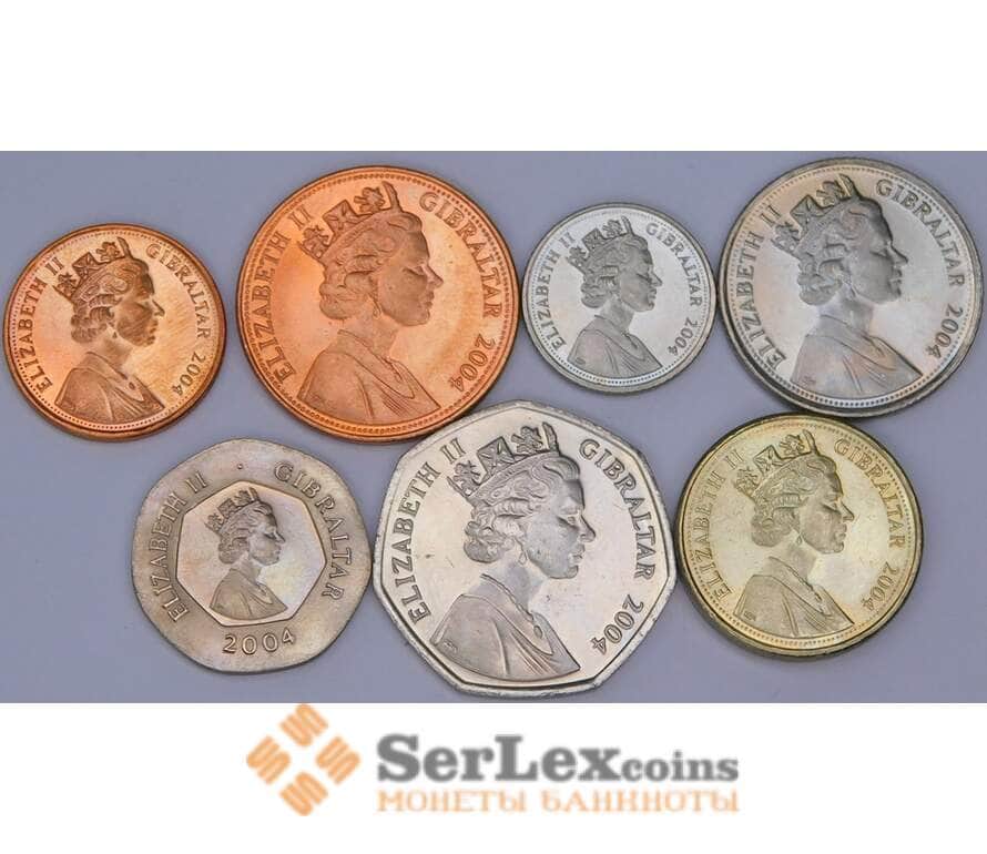 Гибралтар набор монет 1, 2, 5,10, 20, 50 пенсов 1 фунт (7 шт.) 2004 UNC