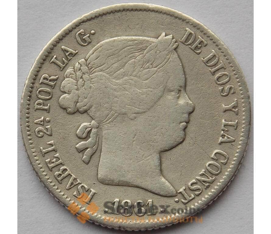 Монета Испания 4 реала 1861 КМ599 VF Серебро Изабелла II (J05.19) арт. 15165