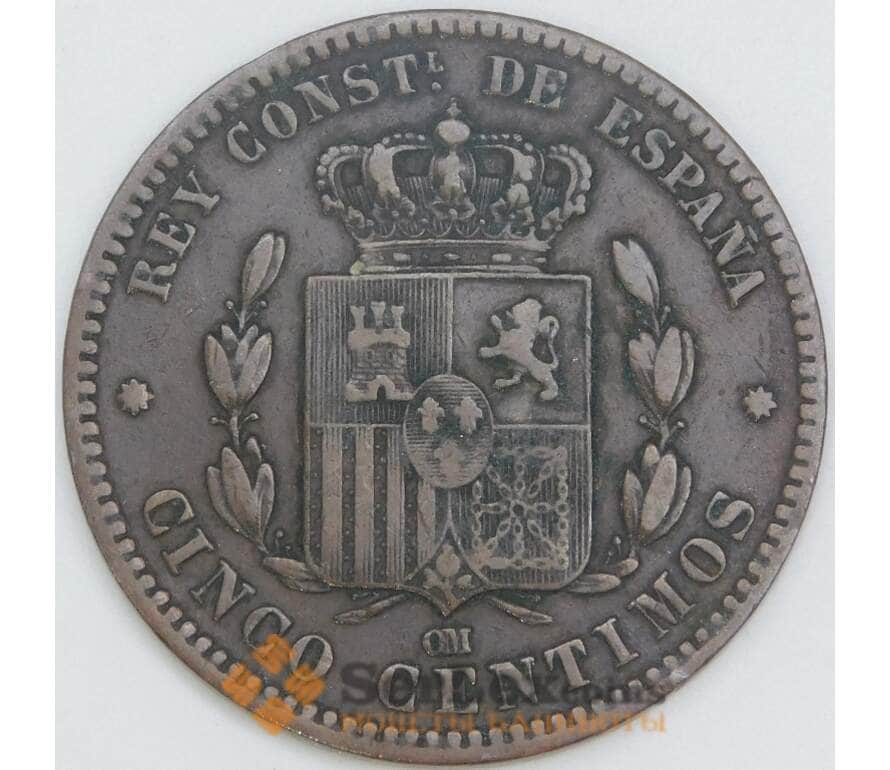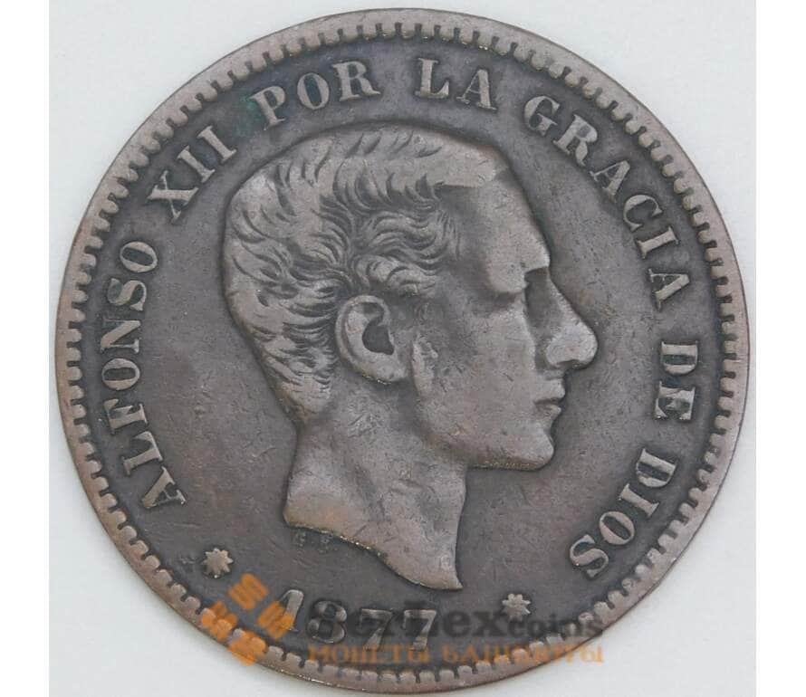 Монета Испания 5 сентимо 1877 КМ674 VF Альфонсо XII арт. 15201