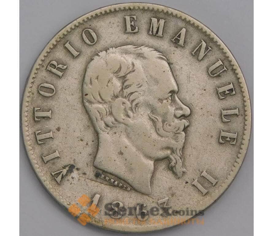 Италия 2 лиры 1863 КМ6а XF арт. 41706
