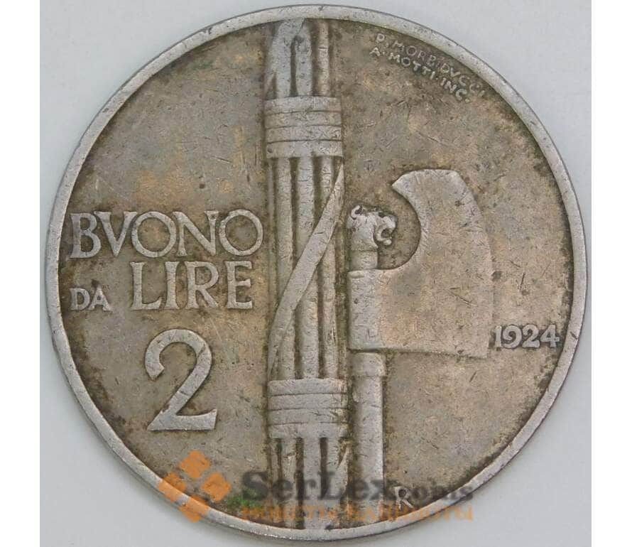 Монета Италия 2 лиры 1924 КМ63 F арт. 38359