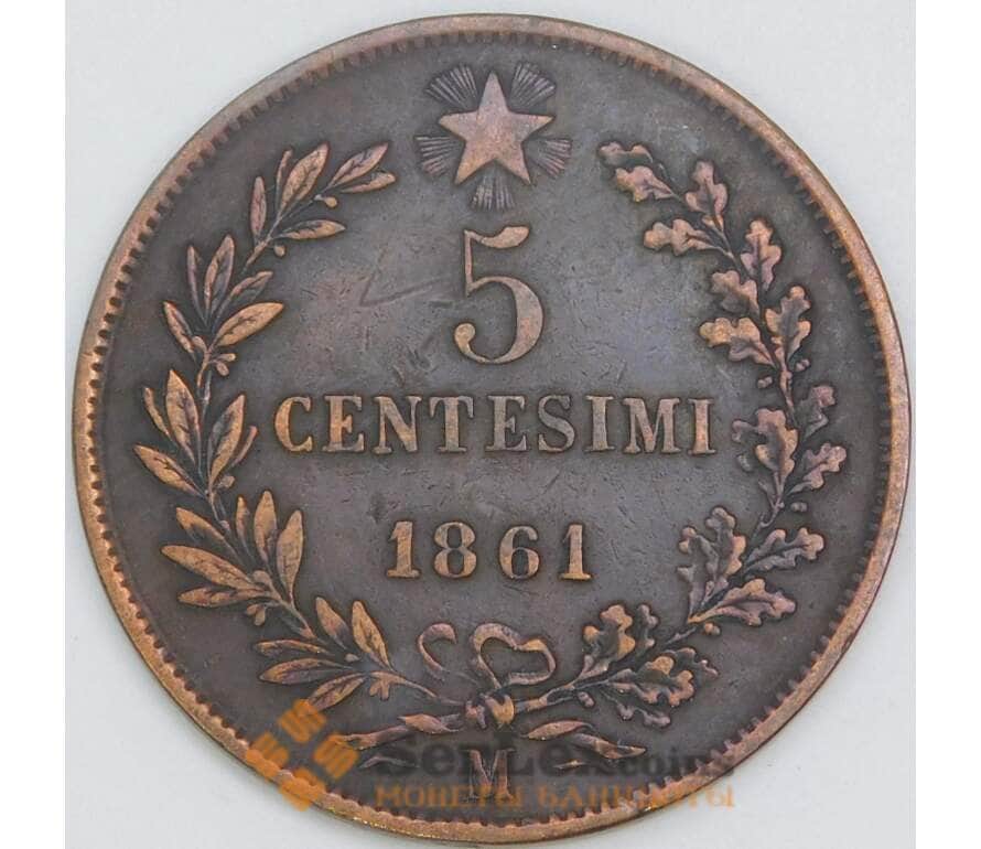Италия 5 чентезимо 1861 M КМ3 VF+ арт. 56545