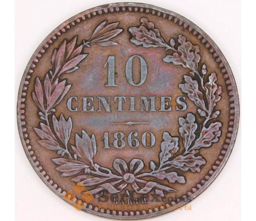 Люксембург монета 10 сантимов 1860 КМ23 XF арт. 42770