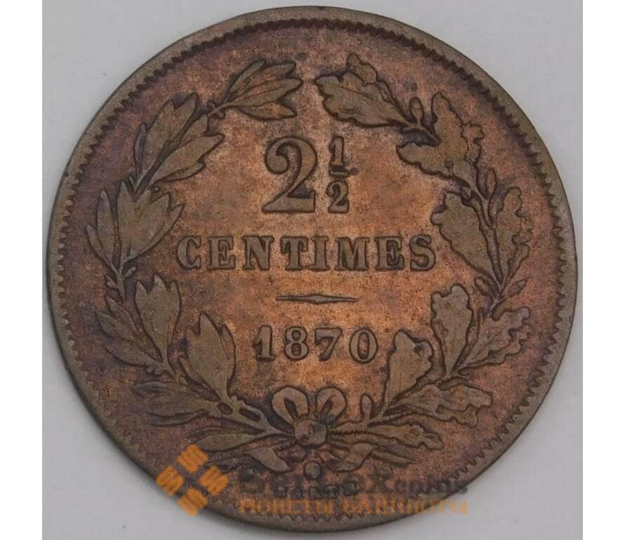 Люксембург монета 2 1/2 сантима 1870 КМ21 F арт. 42801