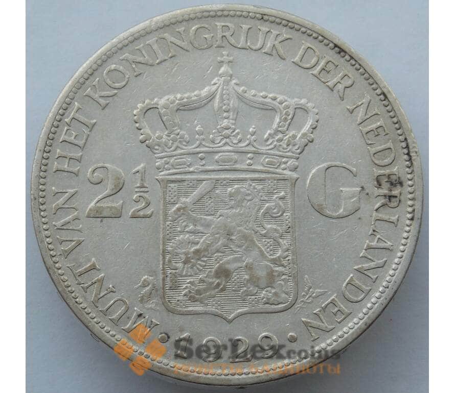 Монета Нидерланды 2 1/2 гульдена 1929 КМ165 VF (J05.19) арт. 14990