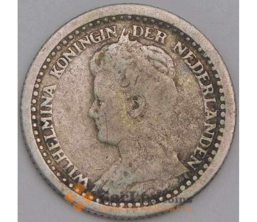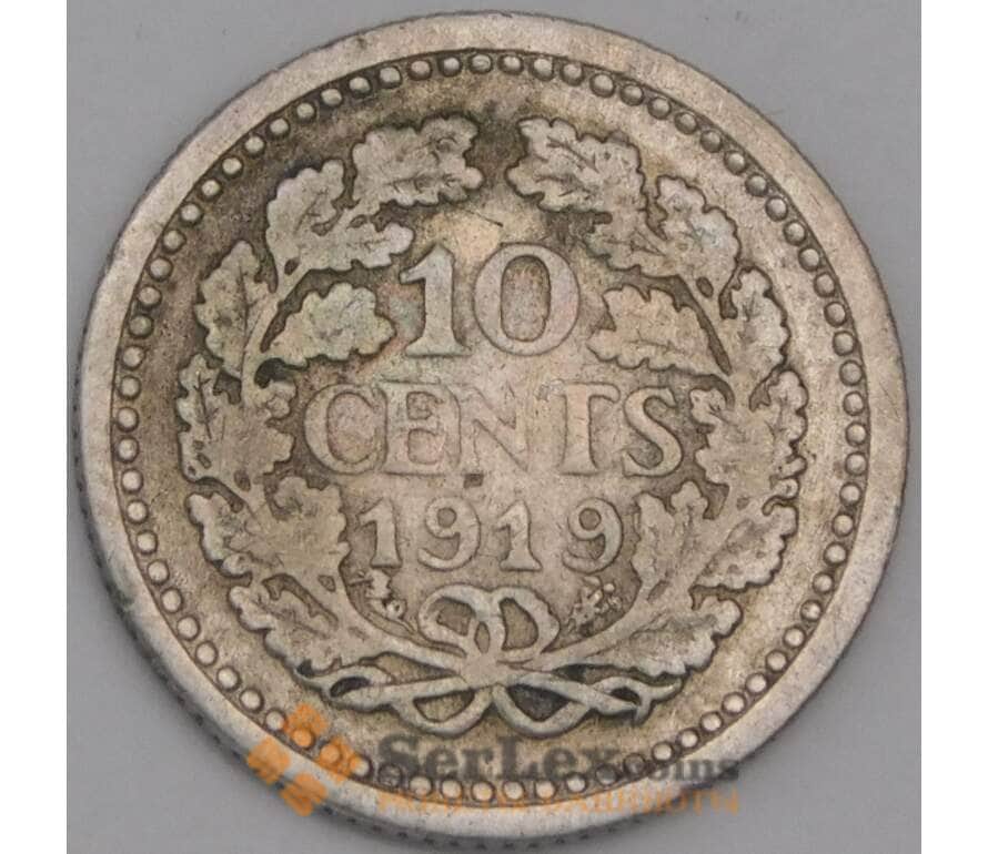 Нидерланды монета 10 центов 1919 КМ145 F арт. 43569
