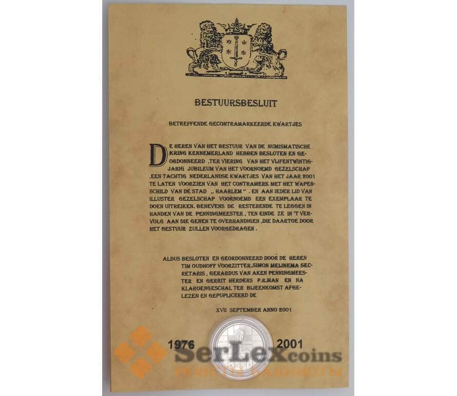 Нидерланды монета 25 центов 2001 КМ204 BU с надпечаткой арт. 42929