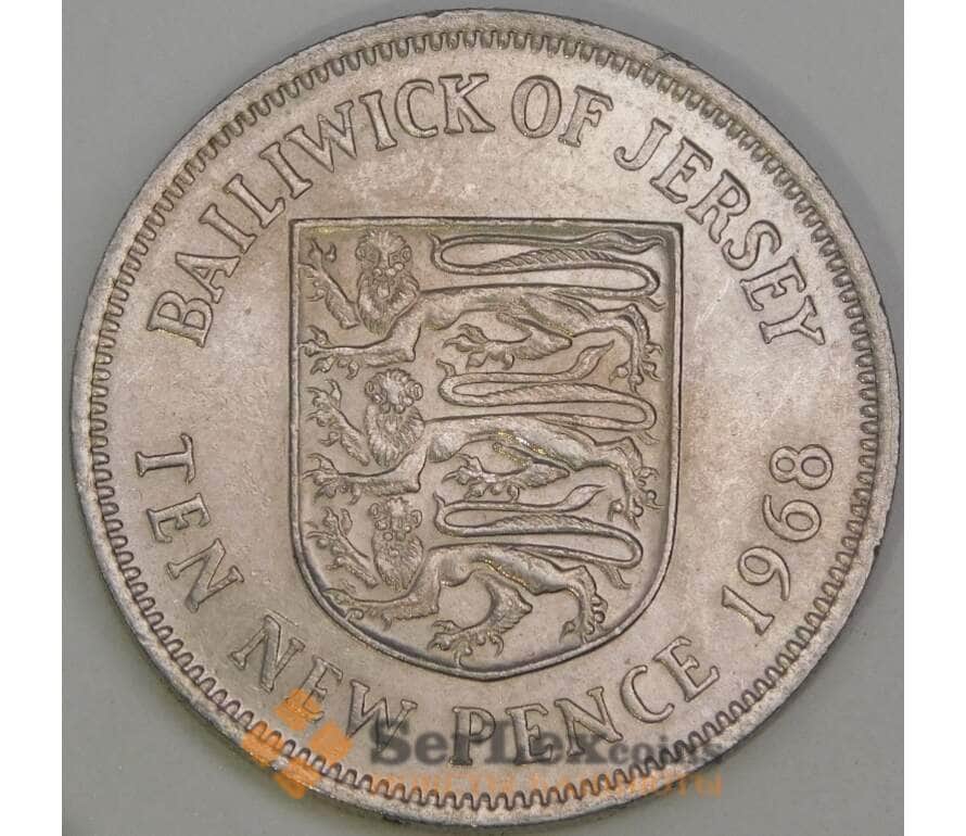 Монета Джерси 10 новых пенсов 1968 КМ33 AU арт. 38781