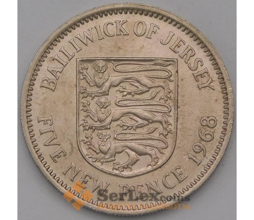 Монета Джерси 5 новых пенсов 1968 КМ32 XF арт. С04570
