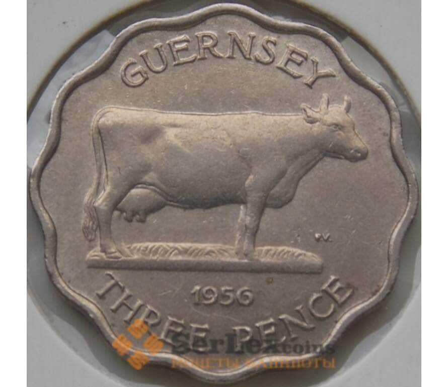 Монета Гернси 3 пенса 1956 КМ17 AU арт. 6233