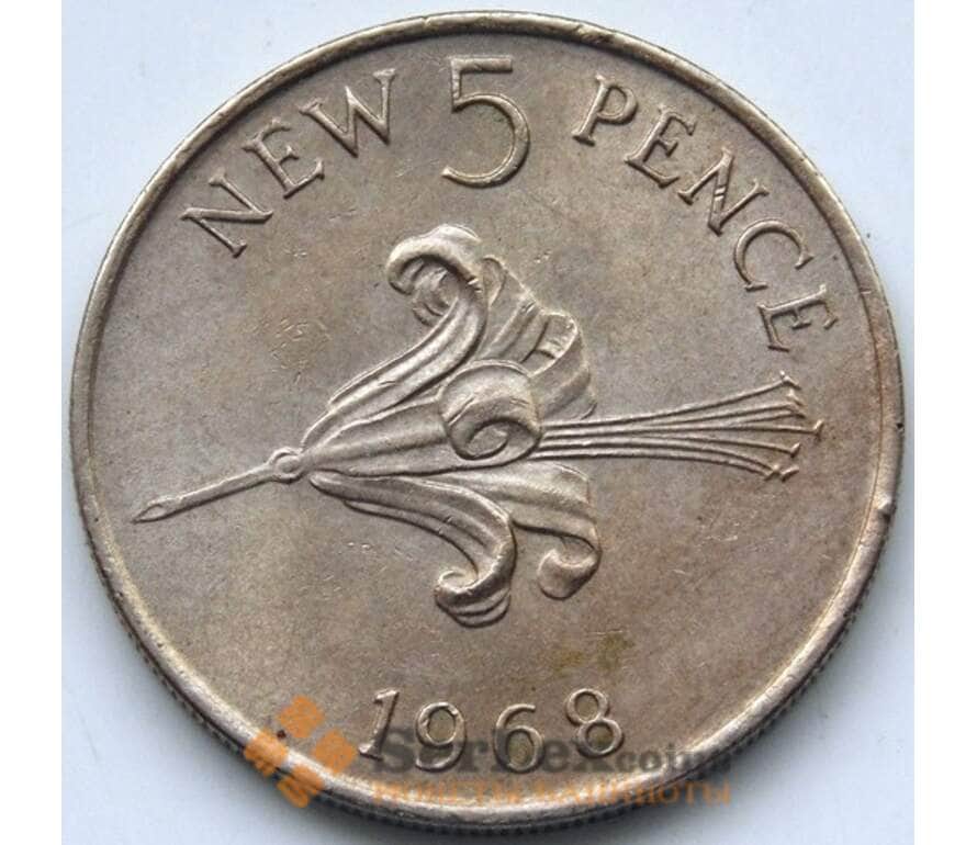 Монета Гернси 5 пенсов 1968 КМ23 AU арт. 5500