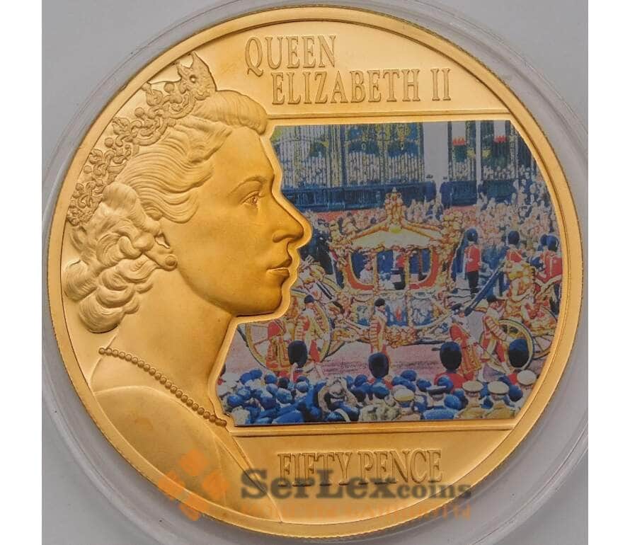 Монета Гернси 50 пенсов 2014 UC217 Proof Размышления о правлении Карета арт. 38018