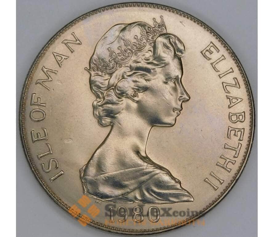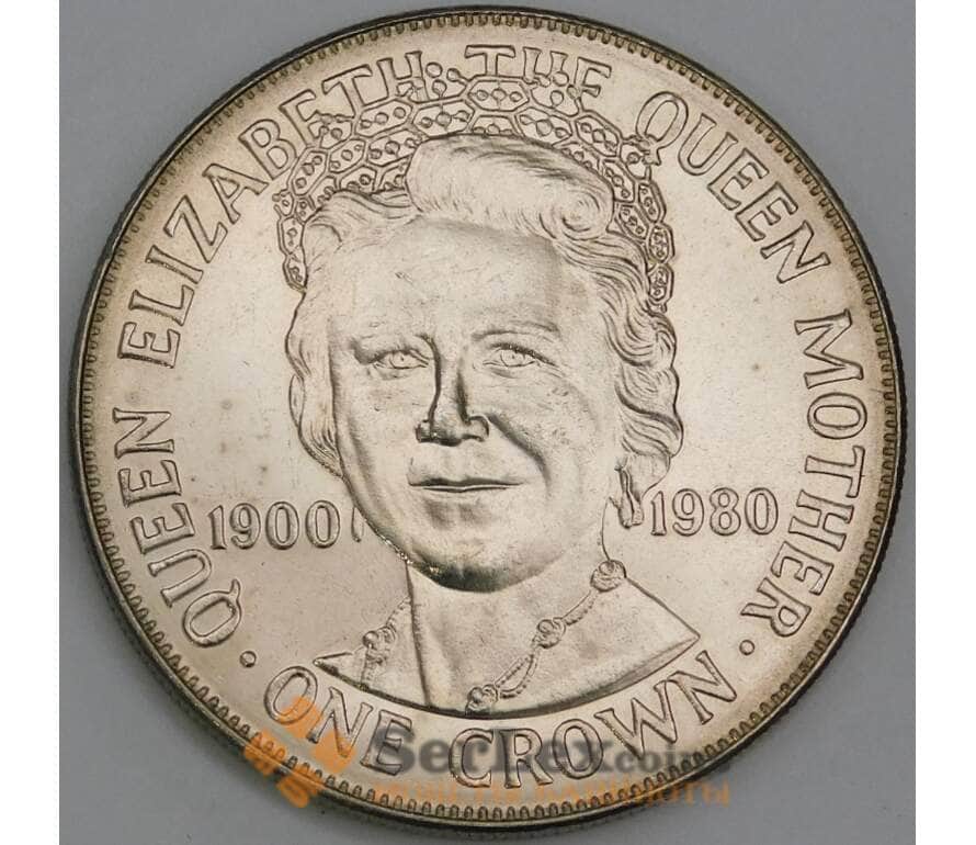 монета Мэн остров 1 крона 1980 КМ68 BU Королева Мать