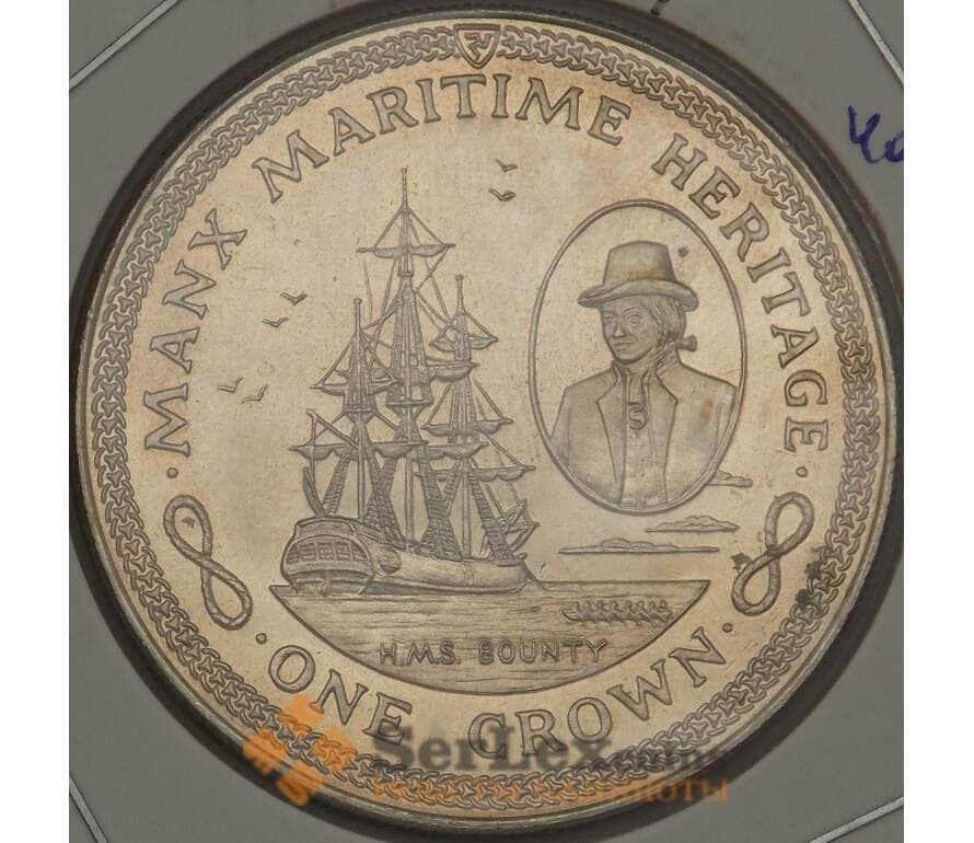 Монета Мэн остров 1 крона 1982 КМ97 Корабль HMS Bounty (ОС) арт. 21465