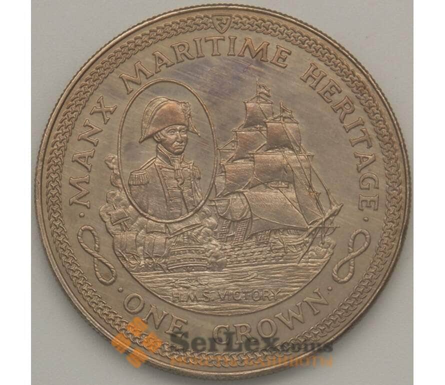 Монета Мэн остров 1 крона 1982 КМ98 BU Парусник Виктория Морское наследие (J05.19) арт. 17786