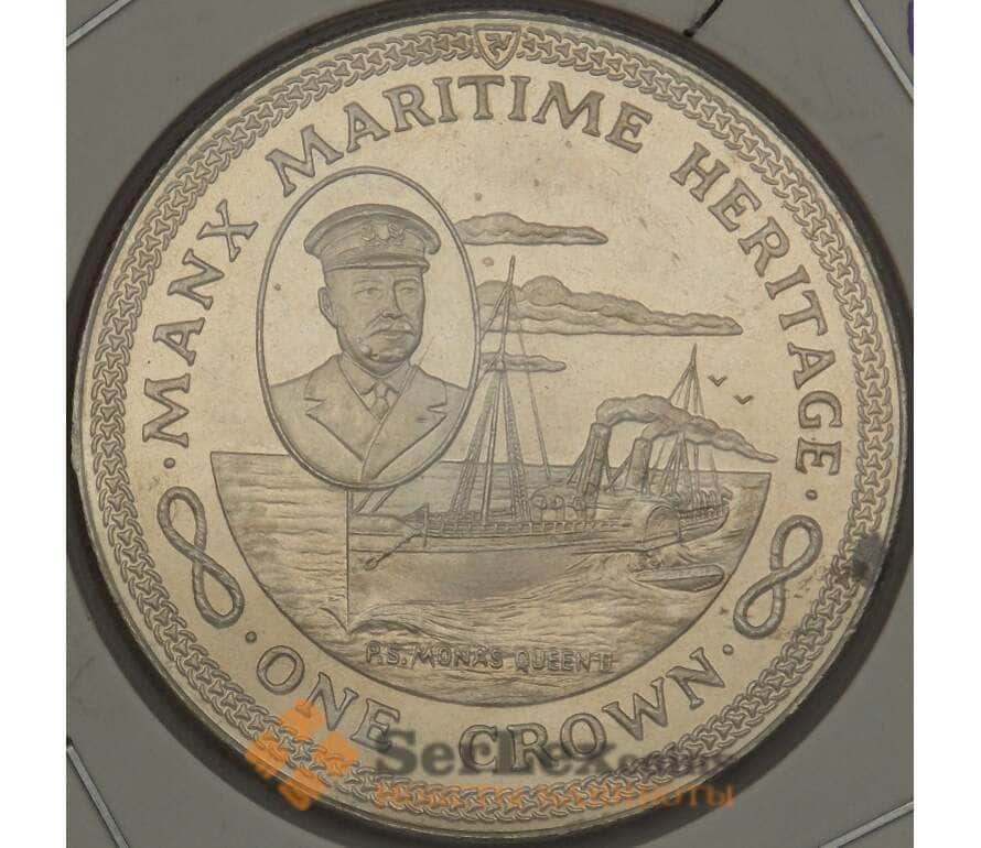 Монета Мэн остров 1 крона 1982 КМ99 Корабль SS Mona's Queen (ОС) арт. 21464