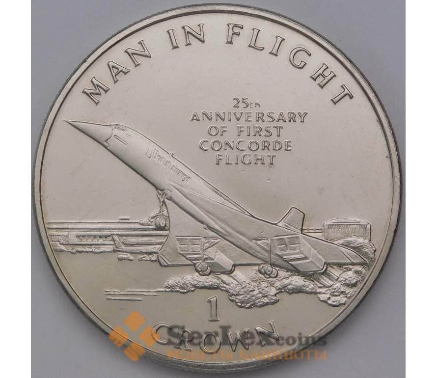 Монета Мэн остров 1 крона 1994 КМ424 BU 25 лет первому полёту Конкорда арт. 36793