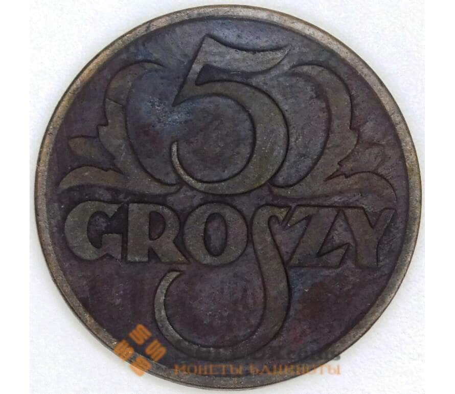 Польша 5 грошей 1928 Y10а VF арт. 54948