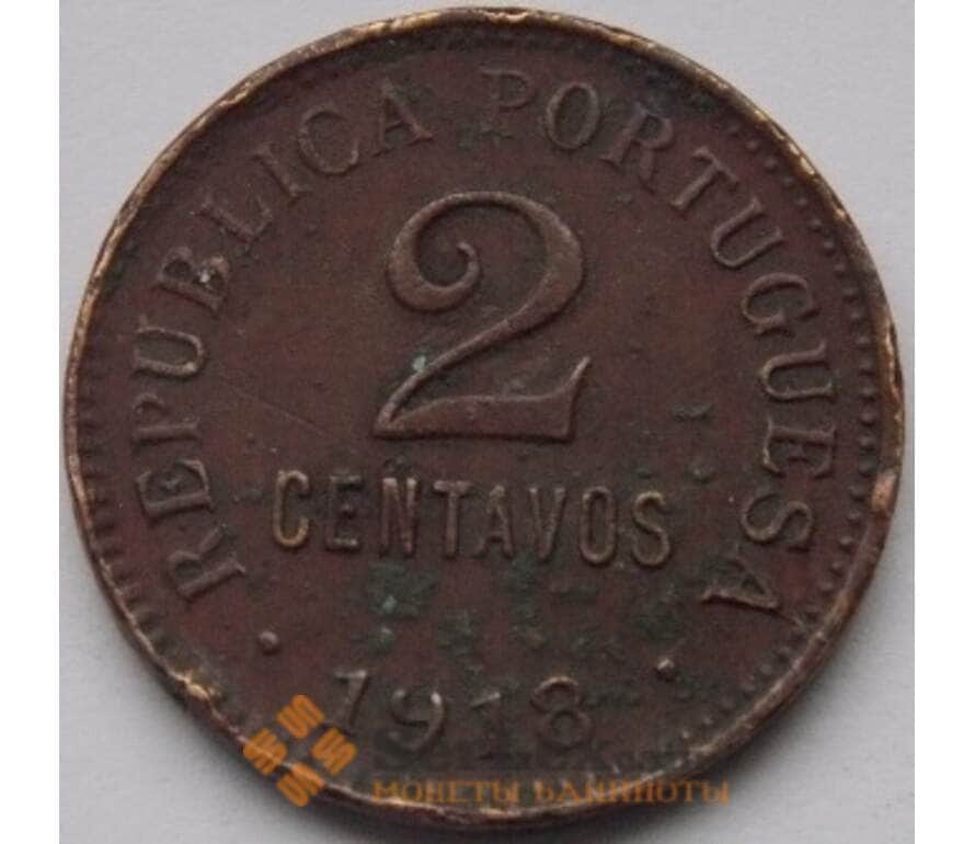 Монета Португалия 2 сентаво 1918 КМ568 VF арт. С03881