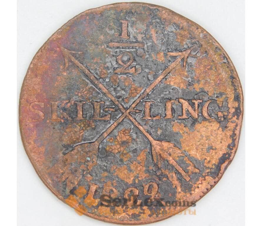 Швеция 1/2 скиллинга 1822 КМ596 F арт. 56768