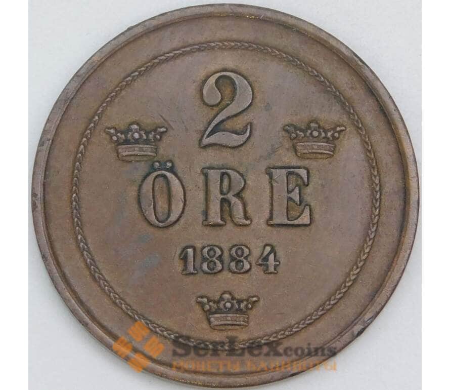 Швеция 2 эре 1884 КМ746 XF арт. 56527