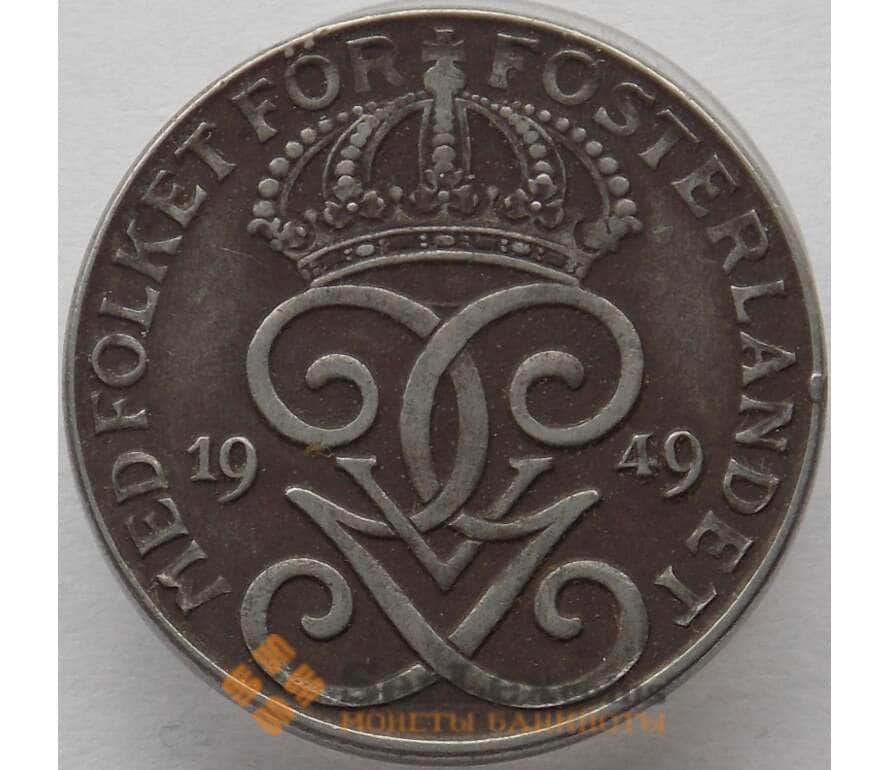 Монета Швеция 2 эре 1949 КМ811 XF (J05.19) арт. 15242