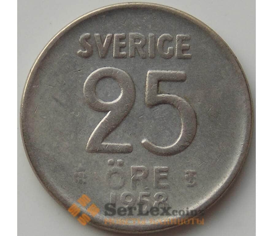 Монета Швеция 25 эре 1958 TS КМ824 VF арт. 11897