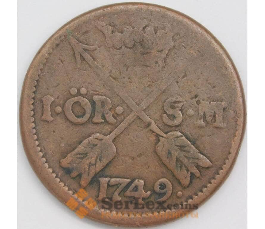 Швеция монета 1 эре SM 1749 КМ416 F арт. 43355