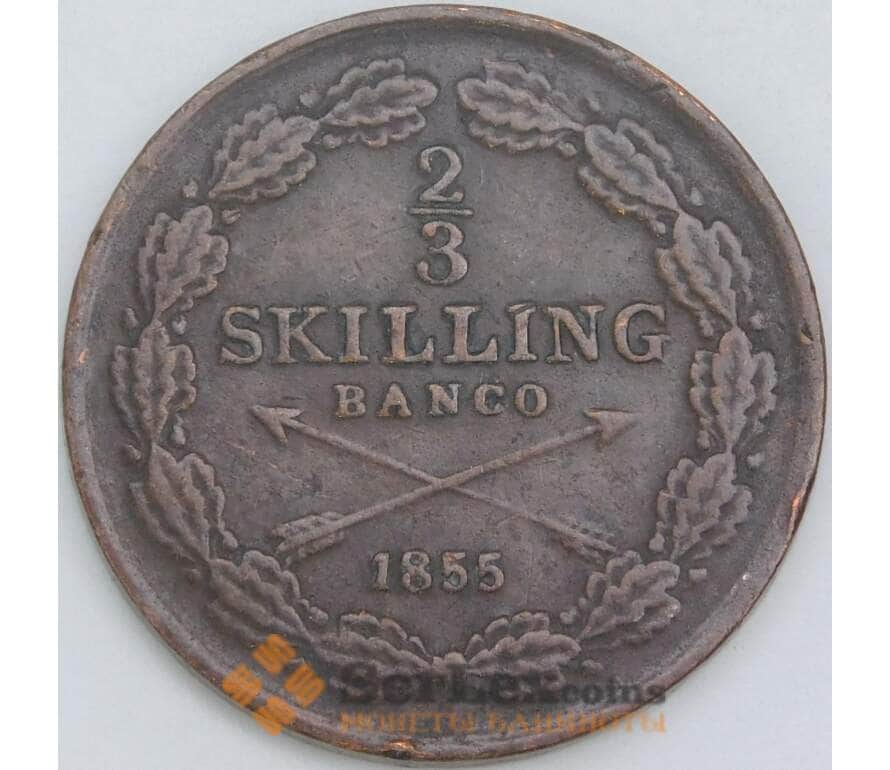 Швеция монета 2/3 скиллинга 1855 КМ663 XF