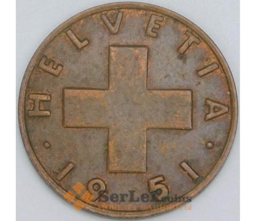 Монета Швейцария 2 раппен 1951 КМ47 XF арт. 13232