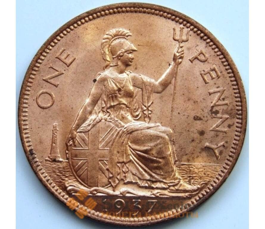 Монета Великобритания 1 пенни 1937 КМ845 UNC арт. 5870