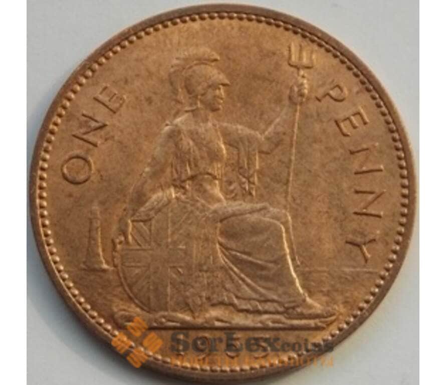 Монета Великобритания 1 пенни 1953 КМ883 AU арт. С03413