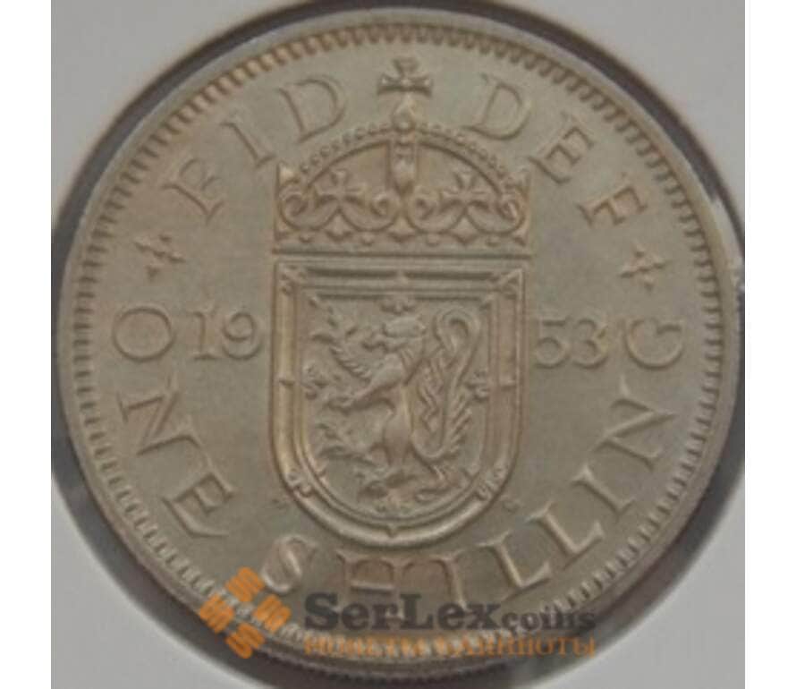 Монета Великобритания 1 шиллинг 1953 КМ891 UNC 1 лев арт. С03437