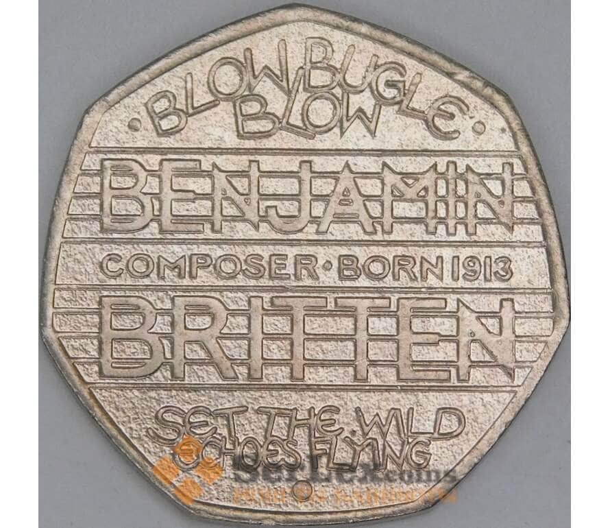 Великобритания 50 пенсов 2013 КМ1253 aUNC Бенжамин Бриттен арт. 56775