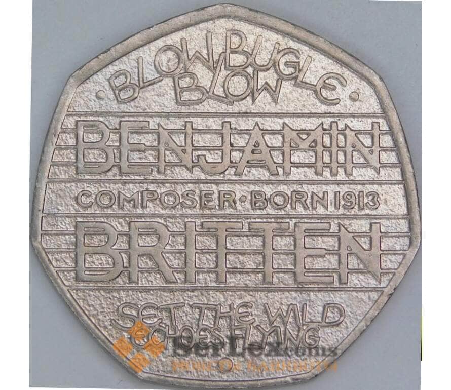 Великобритания 50 пенсов 2013 КМ1253 XF 100 лет со дня рождения Бенджамина Бриттена арт. 56543