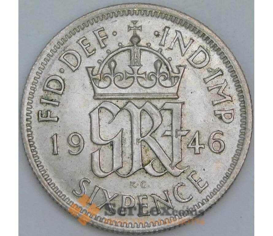 Монета Великобритания 6 пенсов 1946 КМ852 XF Серебро (J05.19) арт. 16055