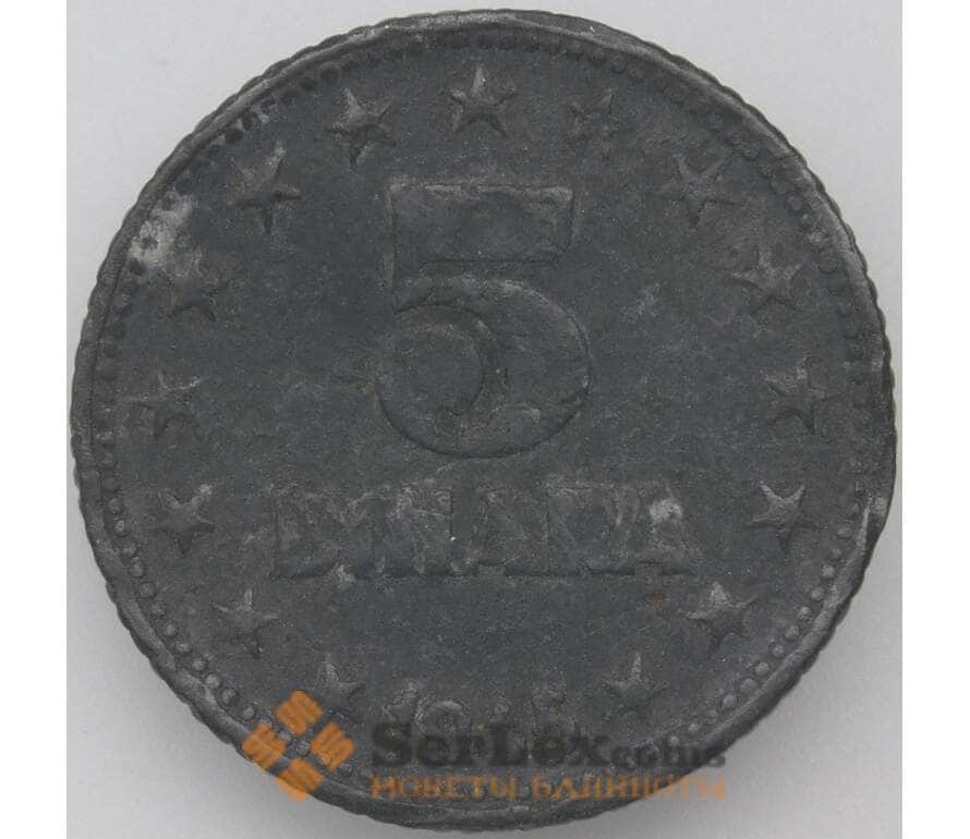 Монета Югославия 5 динаров 1945 КМ28 VF арт. 22361