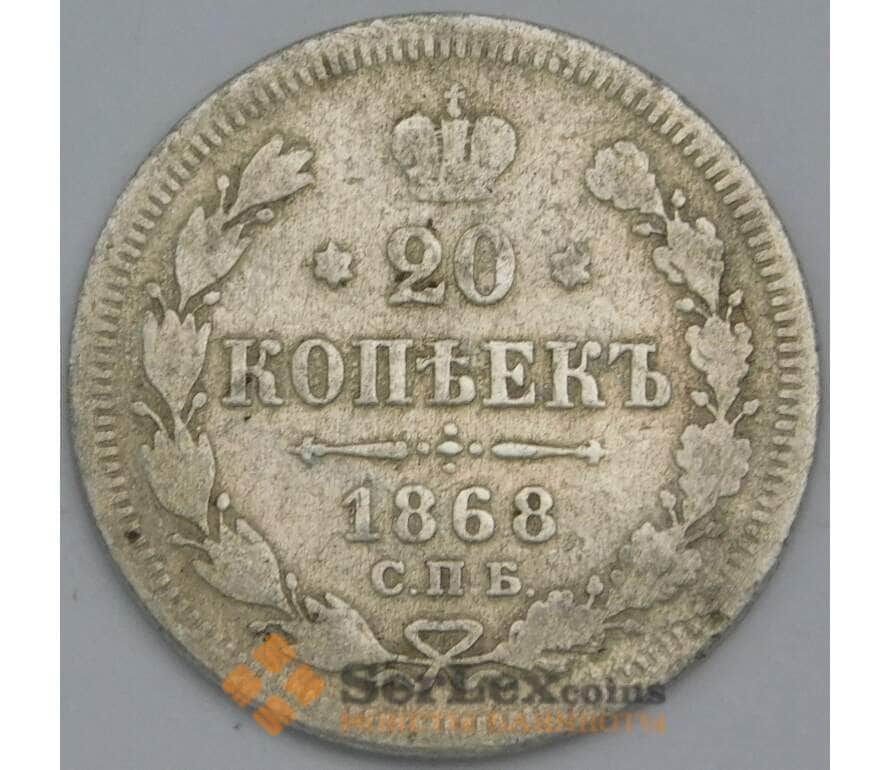 Монета Россия 20 копеек 1868 СПБ НI F арт. 38625