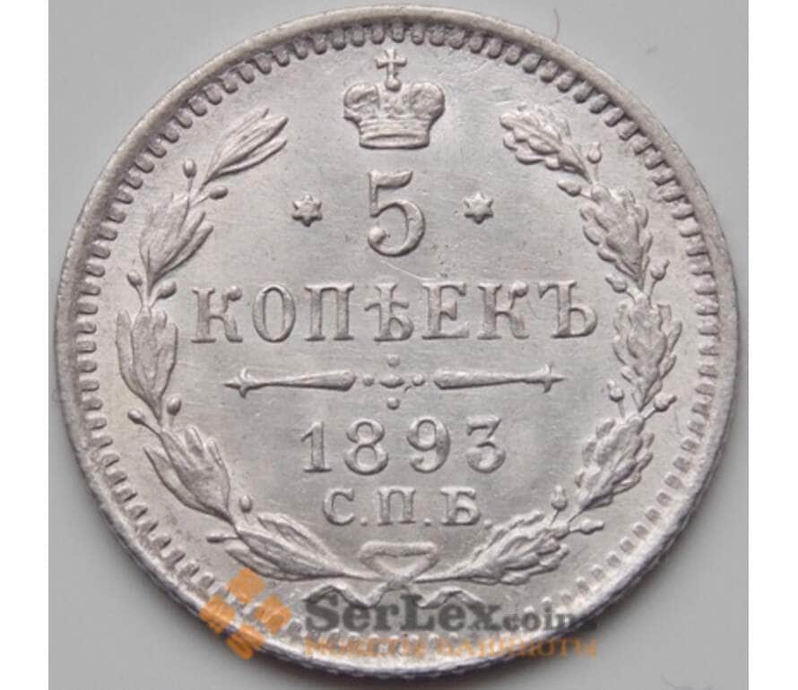 Монета Россия 5 копеек 1893 СПБ АГ AU Серебро арт. С04151