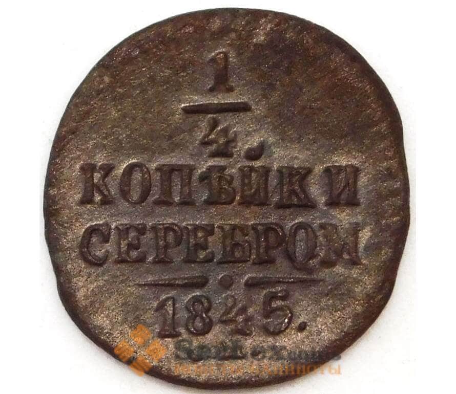 Монета Россия 1/4 копейки 1845 СМ F арт. 23620
