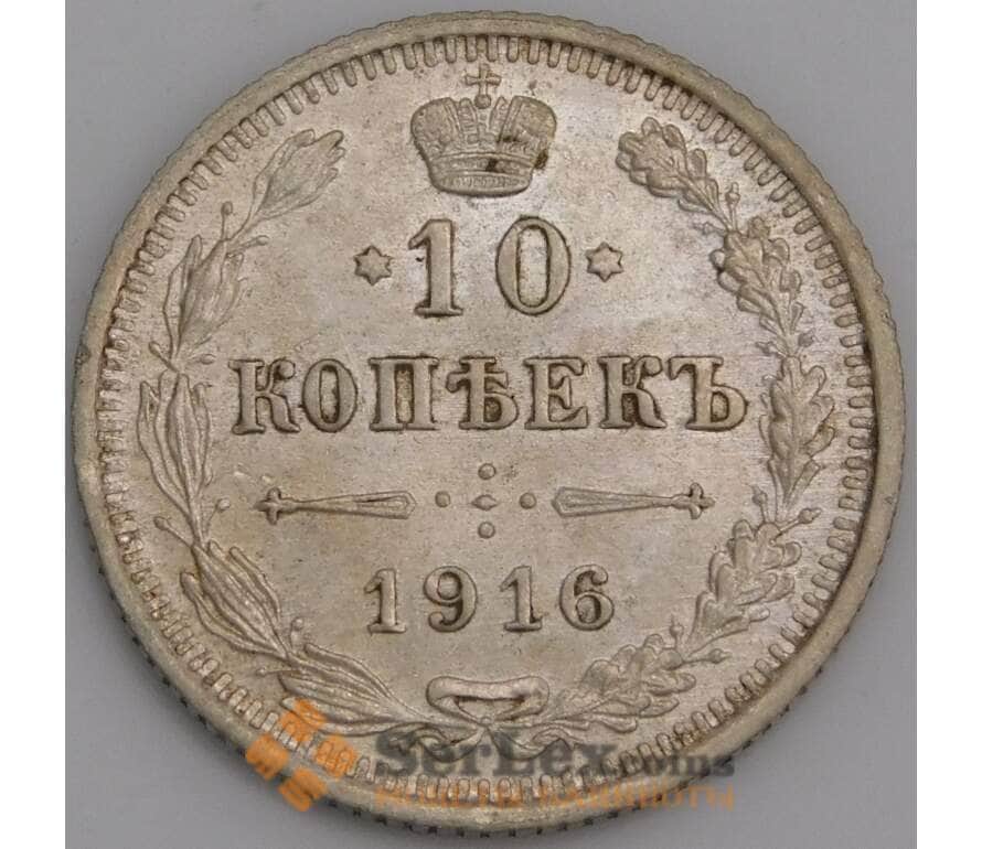 Монета Россия 10 копеек 1916 ВС Y20a AU арт. 30102