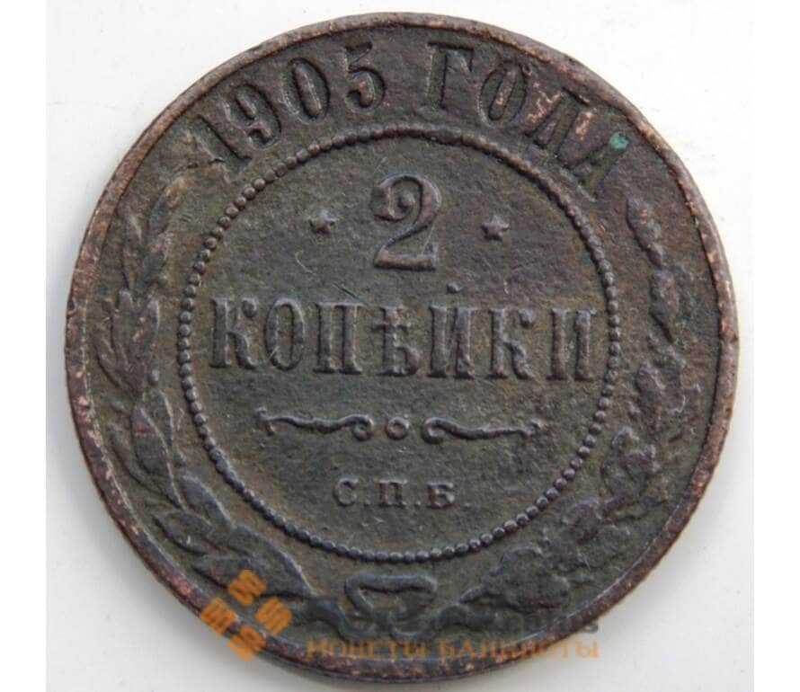 Монета Россия 2 копейки 1905 СПБ Y10.2 F (СГ) арт. 6020