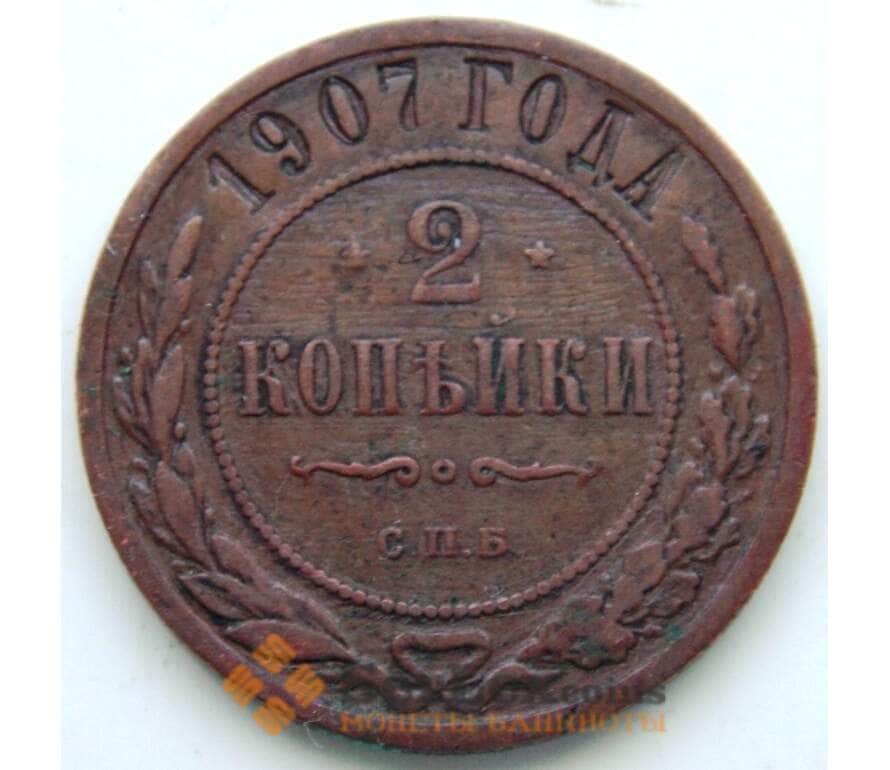 Монета Россия 2 копейки 1907 СПБ Y10.2 VF (СГ) арт. 5964