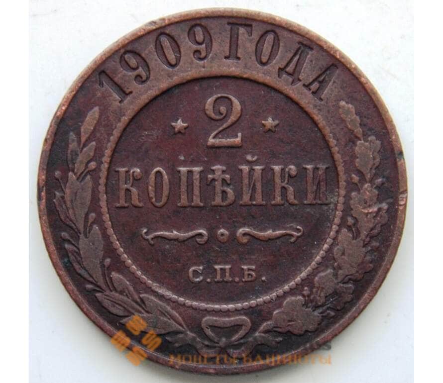 Монета Россия 2 копейки 1909 СПБ Y10.2 F (СГ) арт. 5982