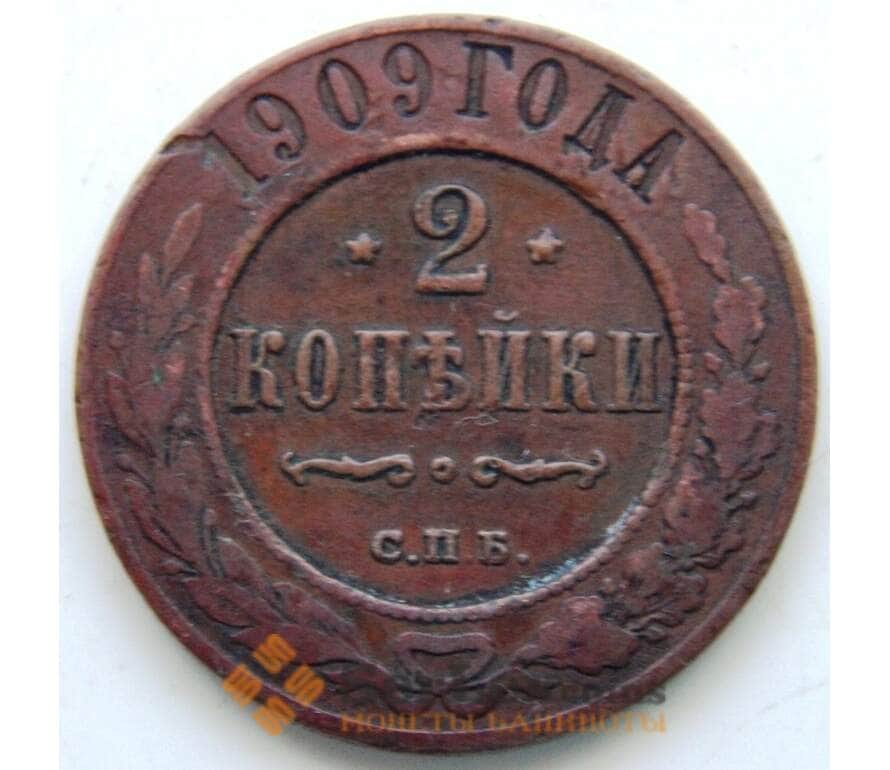 Монета Россия 2 копейки 1909 СПБ Y10.2 VF (СГ) арт. 5970