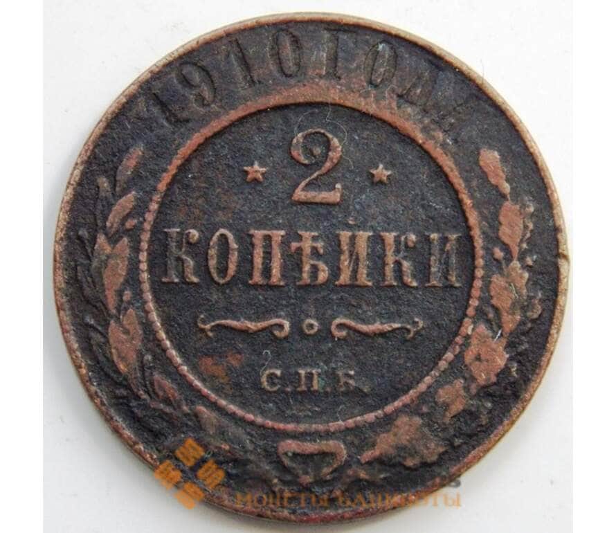 Монета Россия 2 копейки 1910 СПБ Y10.2 F (СГ) арт. 6025