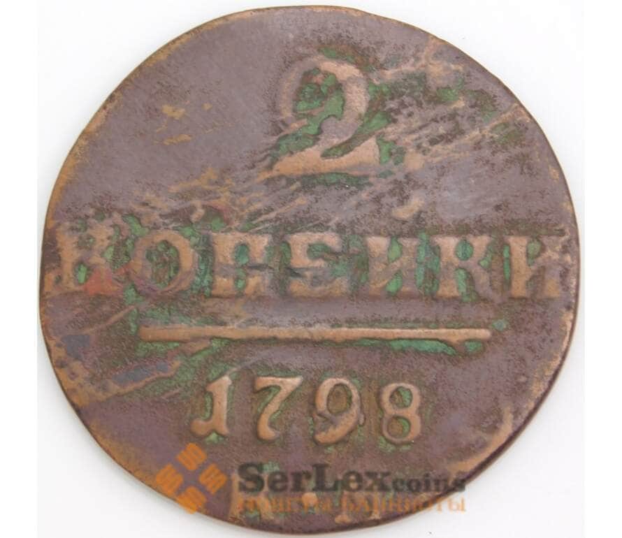 Россия монета 2 копейки 1798 КМ F арт. 47763