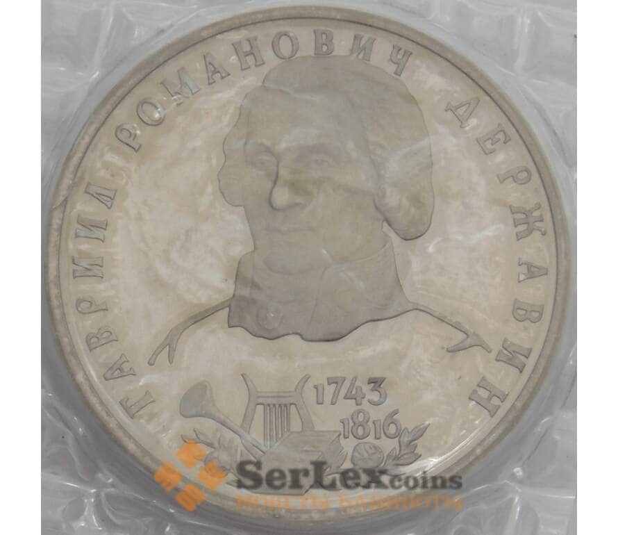 Монета Россия 1 рубль 1993 Державин Proof запайка арт. 15355