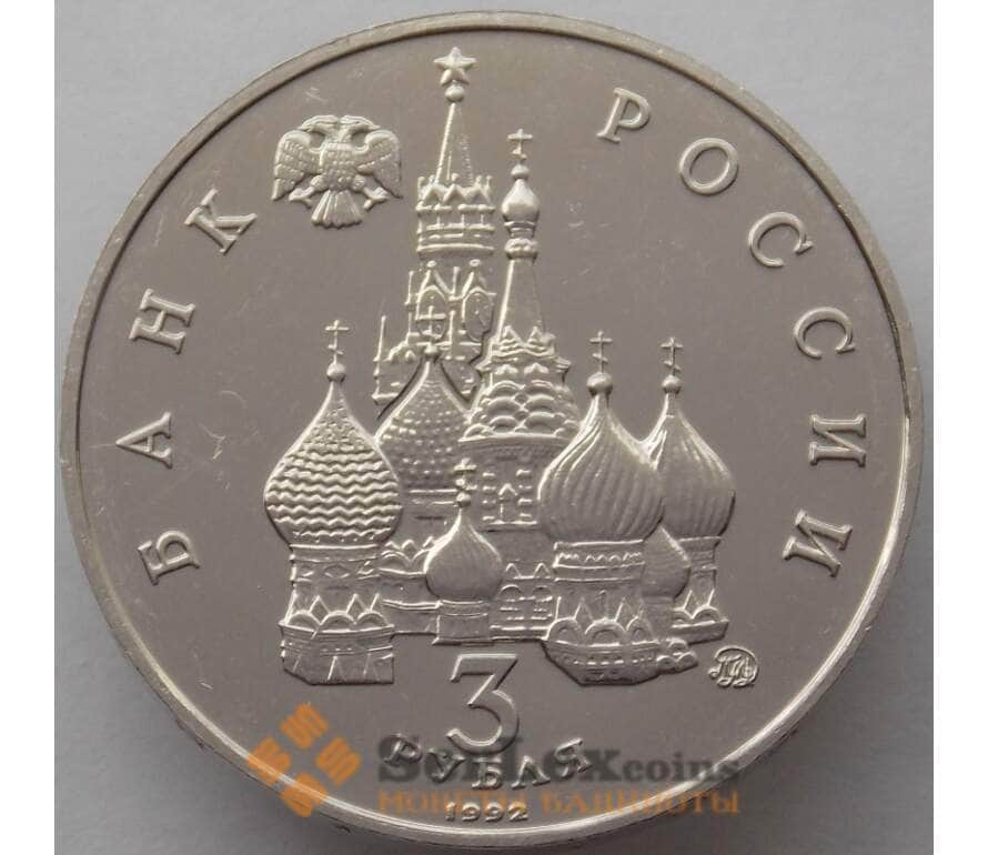 Россия 3 рубля 1992 19-21 августа Победа демократии UNC запайка