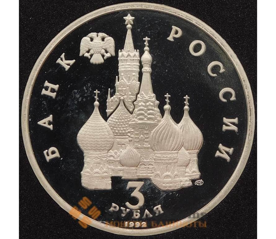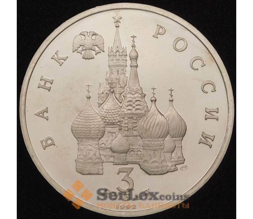 Монета Россия 3 рубля 1992 Невская битва Невский Proof капсула арт. 30885